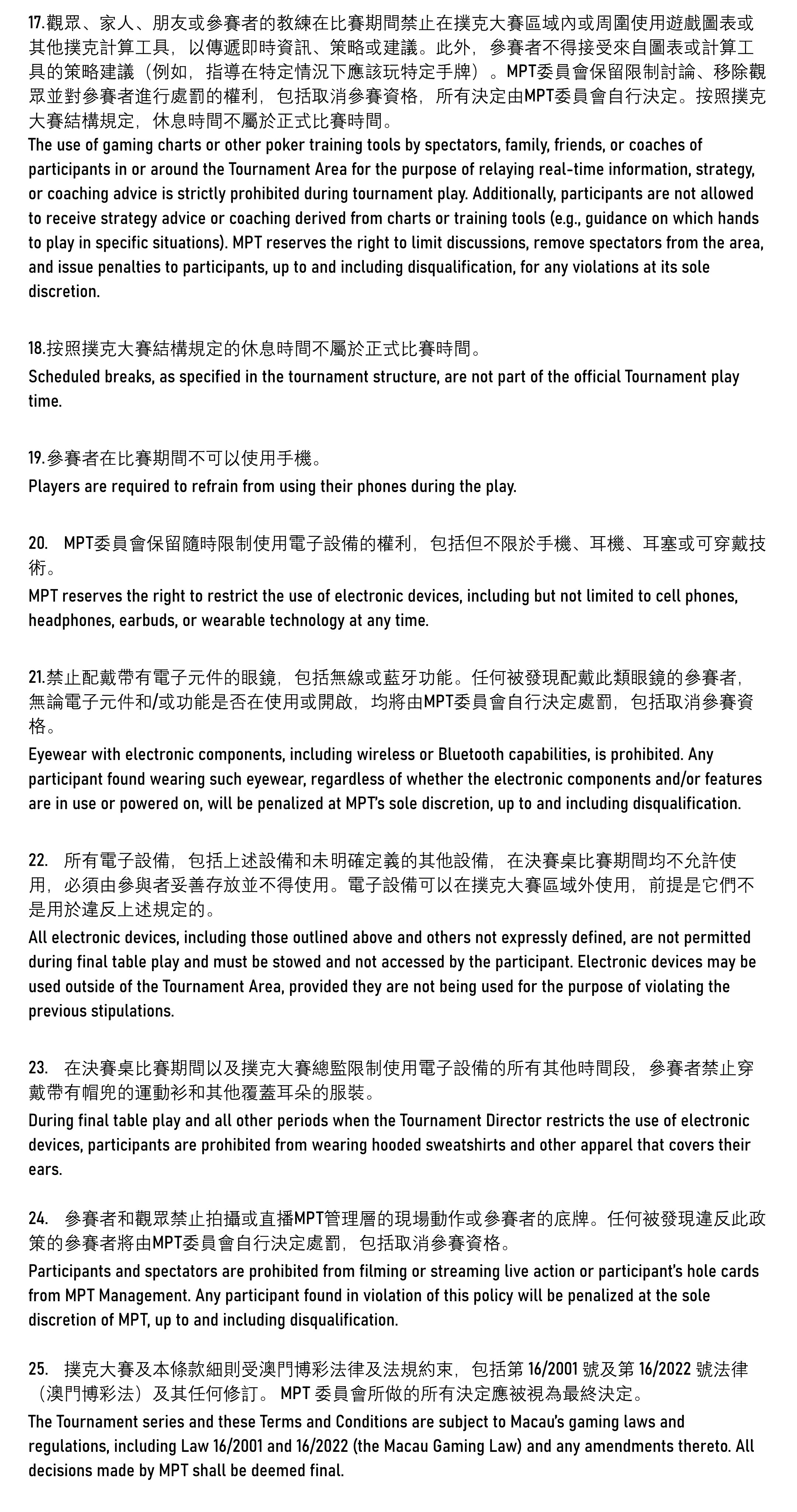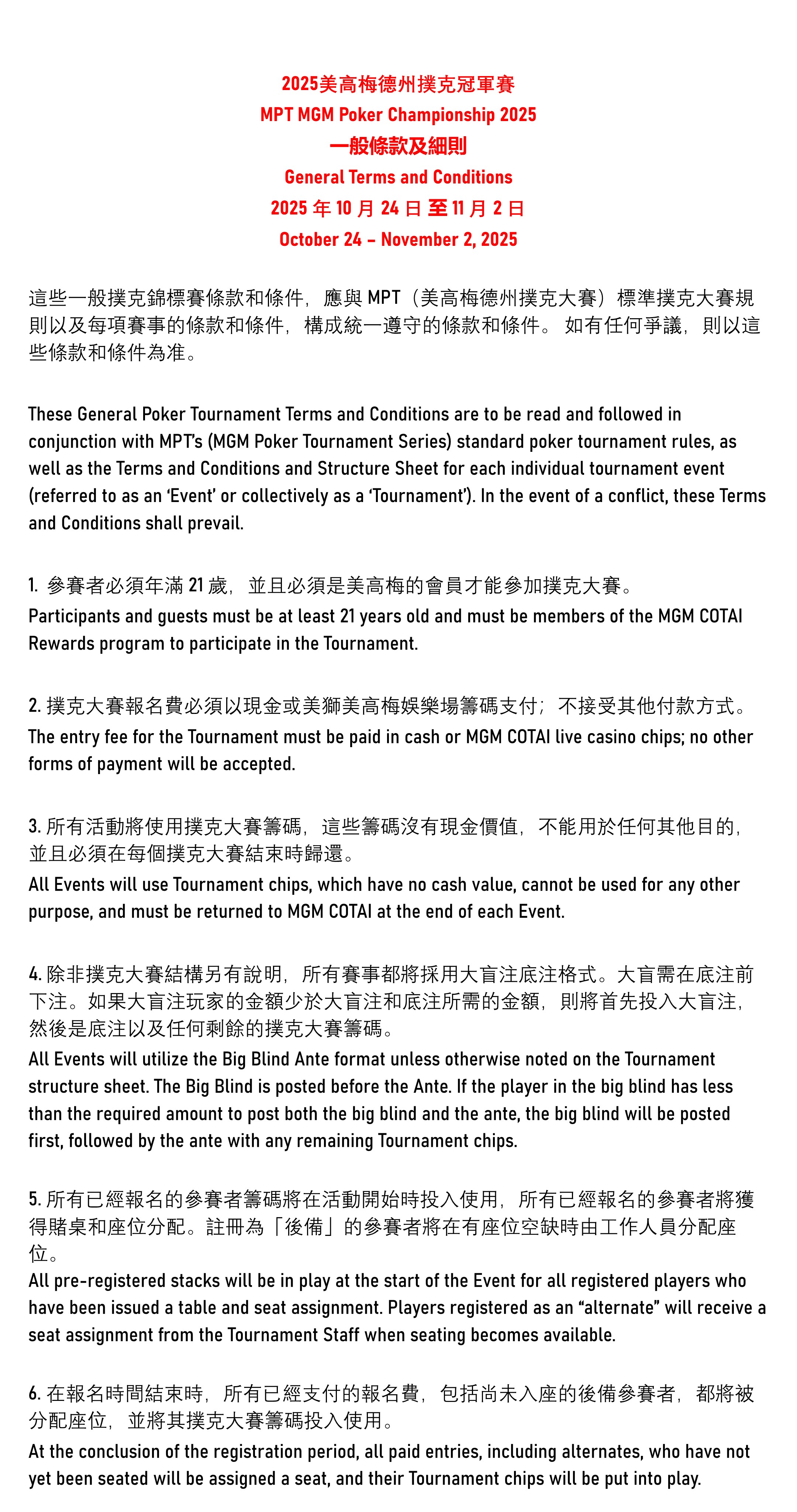 高梅德州撲克冠軍賽主賽 預賽C MPT Championship Main Event Day 1C |