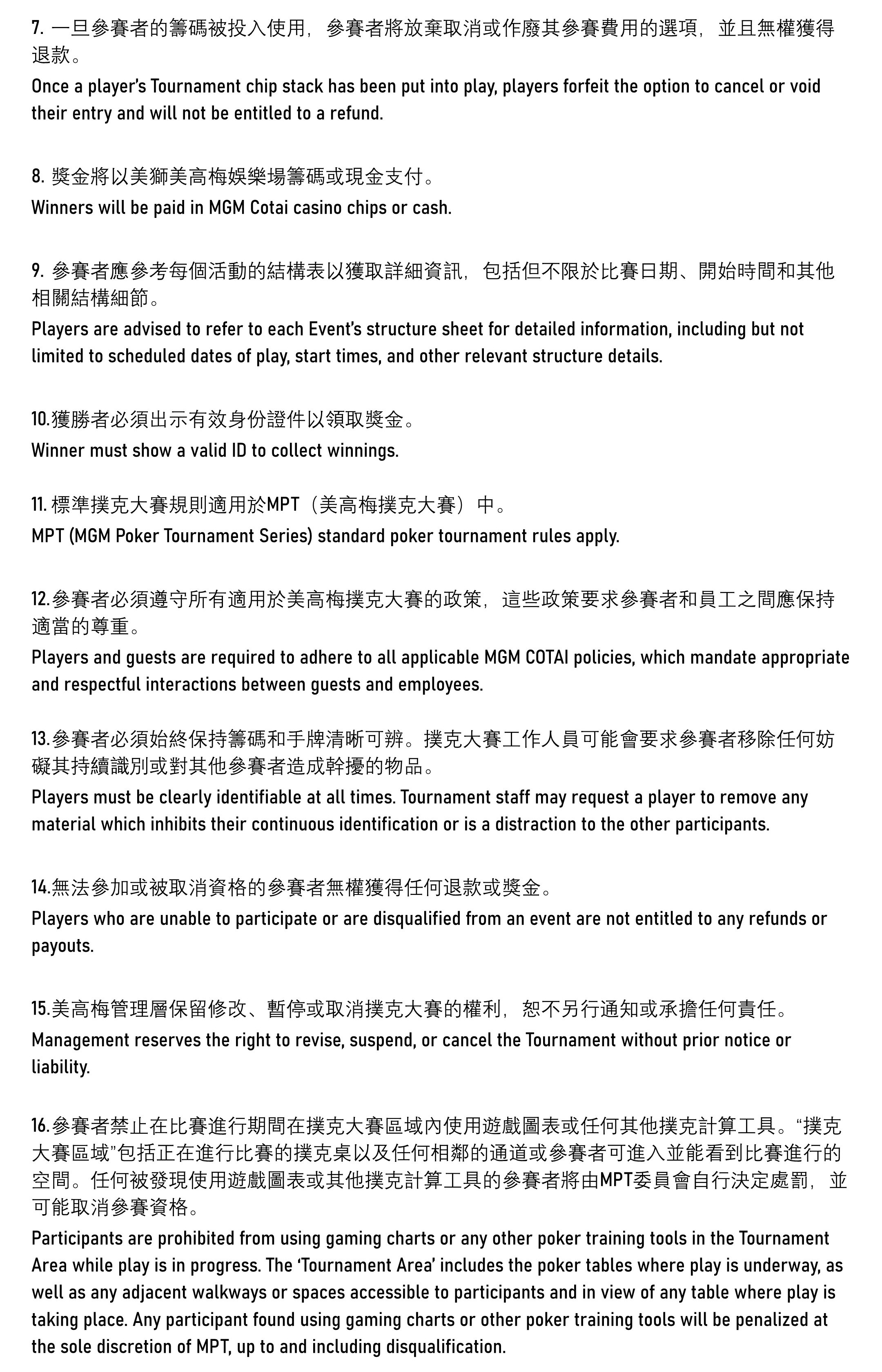 美高梅德州撲克冠軍賽主賽 預賽A MPT Championship Main Event Day 1A |